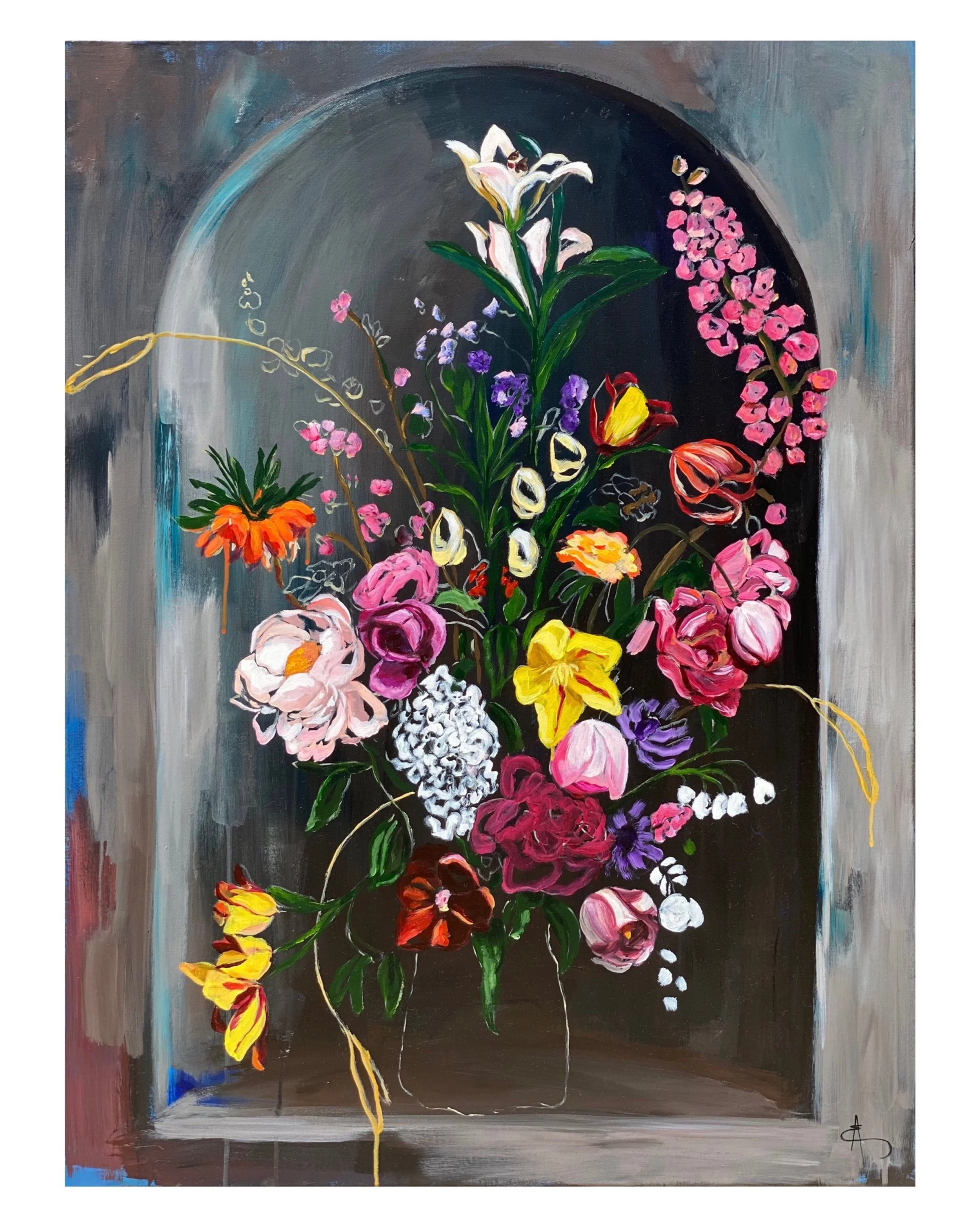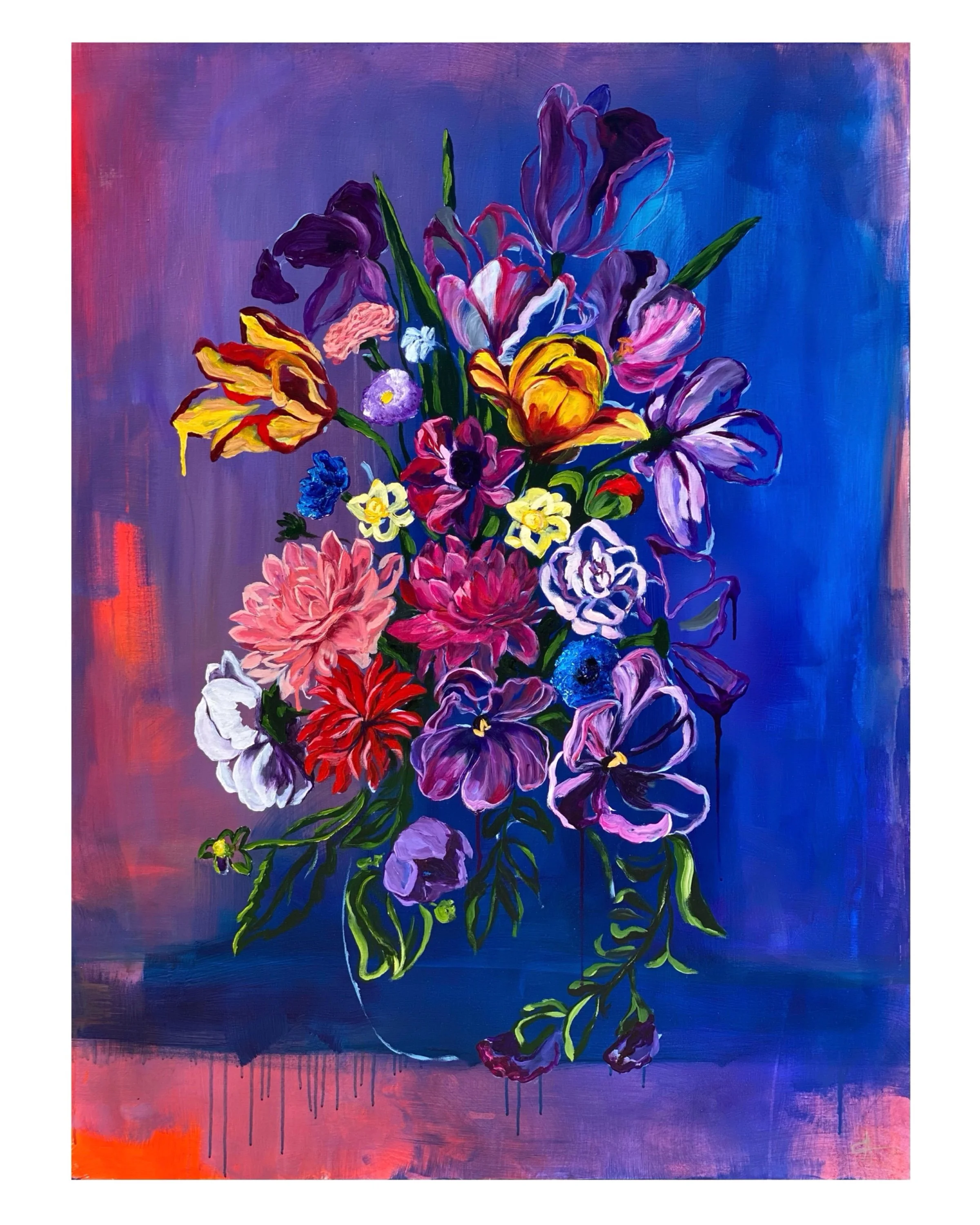 This series is a journey through the tender landscapes of becoming where growth, grief, and grace intertwine. Each flower carries a story of unlearning and relearning, of finding the root beneath the bloom. Some petals are fully formed, radiant in their wholeness. Others remain unfinished, dripping, still in process, reflecting the healing in motion.